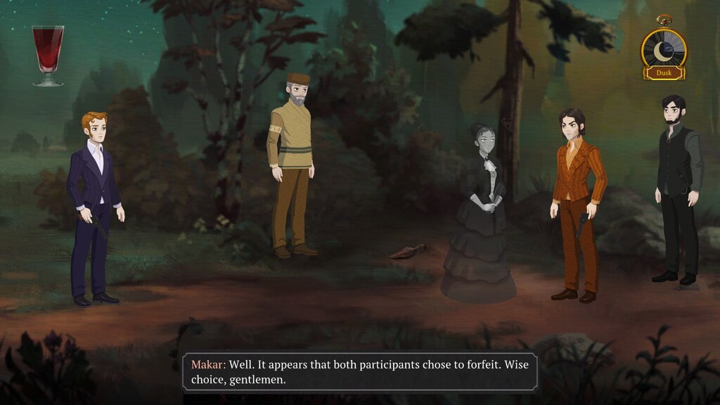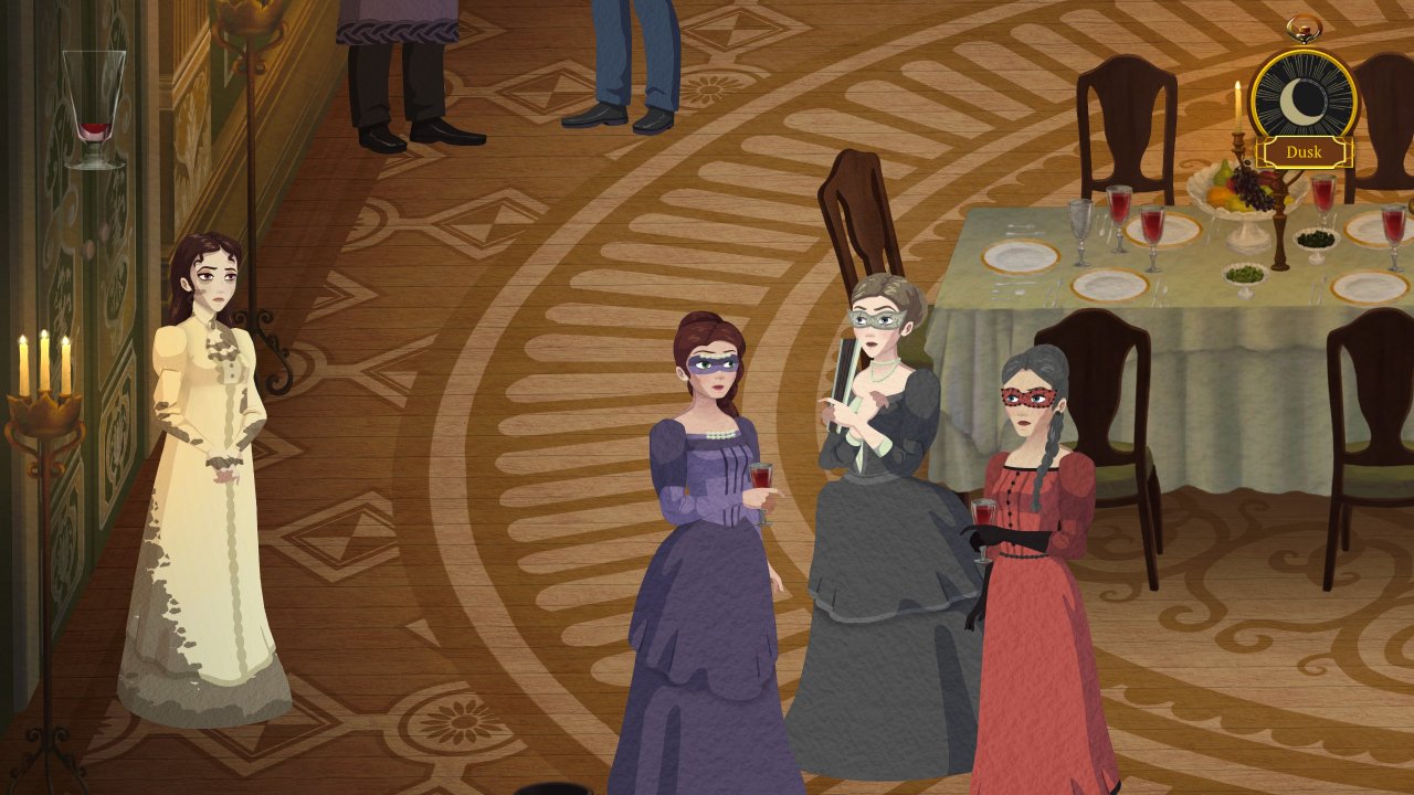 Grafika je jedným z najväčších lákadiel Cabernetu. Hra má ručne kreslený štýl, ktorý pripomína papierové bábiky z gotických príbehov. Každá lokácia vyzerá ako maľovaný obraz - od melancholického jazera pod mesačným svetlom po útulný interiér taverny. Postavy majú jednoduché animácie, ale design sám o sebe je nádherný. Celková estetika je viktoriánska s nádychom východoeurópskeho folklóru. Vidíte tu inšpirácie ruskou a slovanskou architektúrou, kostýmy aj kultúrou. Liza sama má niekoľko rôznych outfitov, ktoré môžete nosiť. A každý outfit má aj herný efekt - rôzne šaty vám dávajú rôzne bonusy alebo schopnosti. Je to ako hľadať novú zbroj v klasickom RPG, len oveľa štýlovejšie. UI je čisté a dobre usporiadané. Máte svoj denník s questmi, záložku so vzťahmi s rôznymi postavami, inventár a glosár exotických termínov. Všetko je intuitívne a ľahko sa v tom orientujete.