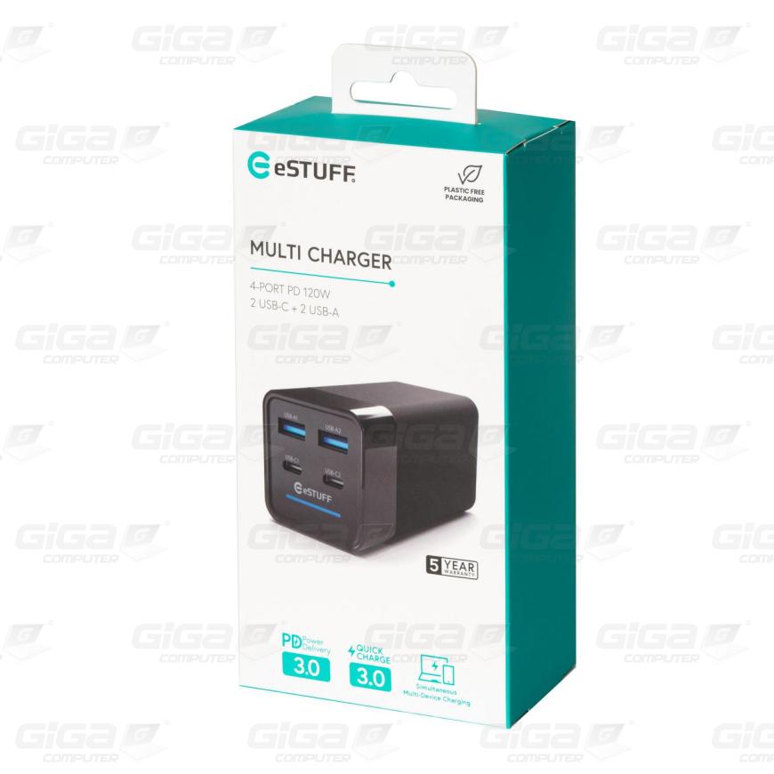 Posuňte nabíjanie na vašom stole na vyššiu úroveň s ľahkou a kompaktnou nabíjačkou eSTUFF 120W USB-C 4portová PD GaN s inteligentnou technológiou nabíjania, ktorá poskytuje optimalizované nabíjanie USB zariadení podľa potrieb vášho zariadenia.