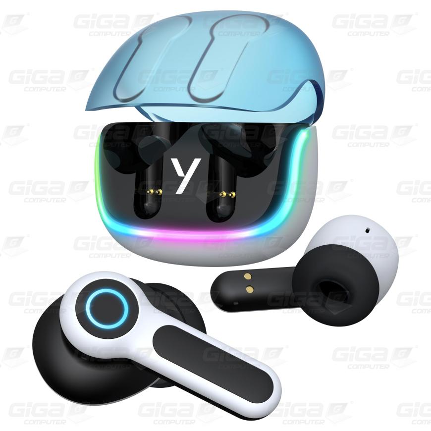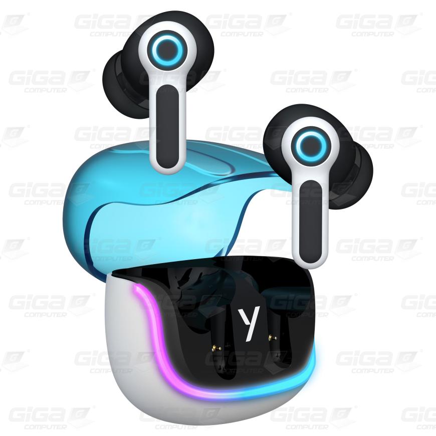 Biele puzdro s modrým otváraním a čiernymi doplnkami vytvára moderný a sofistikovaný vzhľad. Farebné podsvietenie puzdra a modré kruhové podsvietenie slúchadiel dodáva futuristický nádych, ktorý podčiarkuje ich štýlový dizajn a dodáva im jedinečný charakter.